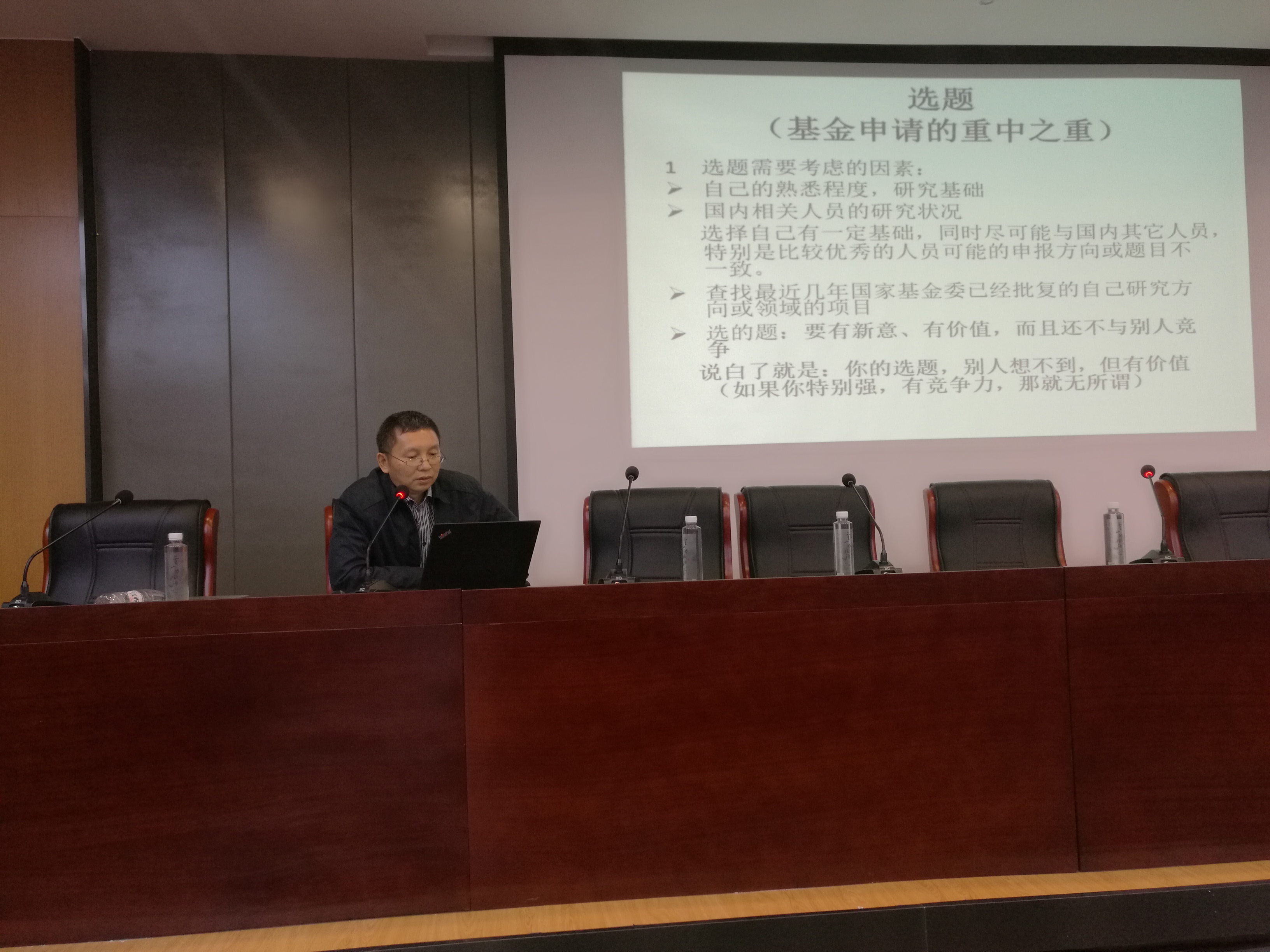 最后,乐贵明研究员给师生们作了申请国家自然科学基金的经验讲座,介绍了基金申请书撰写中的经验和建议。同时,教诲广大科研工作者,一定要选择自己感兴趣的方向,沉得住气,扎扎实实做学问,最后才能做出高水平的科研成绩。在会议结束后,乐教授热情了回答了我院师生提出的问题。