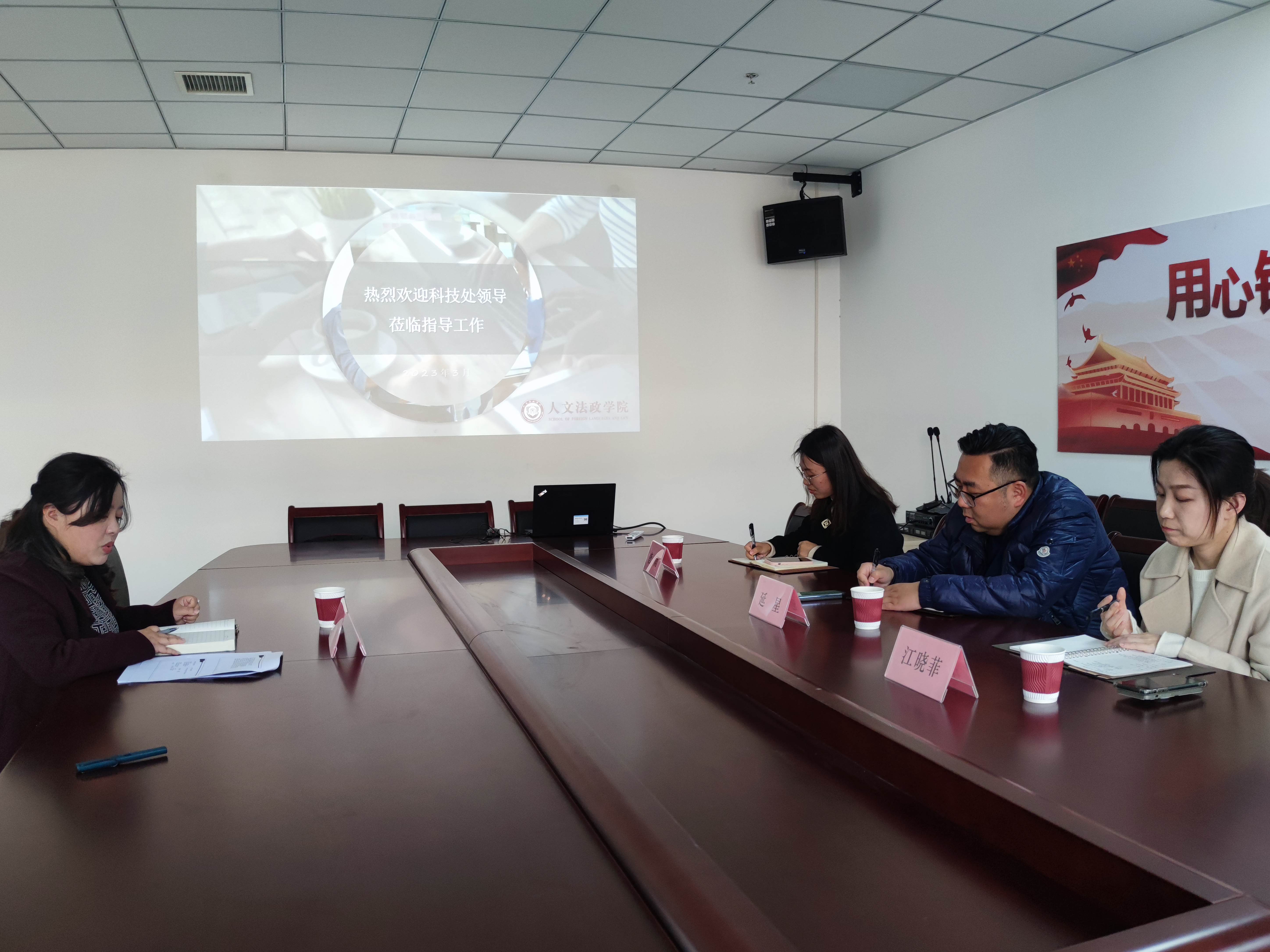 人文法政学院赵岚副院长对科技处一行表示欢迎,并从科研项目、论文、著作、成果等方面详细介绍了学院近年来科研工作情况,同时也客观分析了科研方面存在的短板。