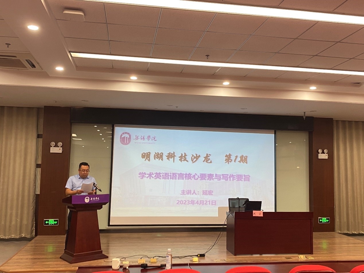 4月21日,由科技处举办的明湖科技沙龙第1期活动在行政楼227报告厅成功举行。此次活动邀请全国知名科技英语专家延宏副教授作题为“学术英语语言核心要素与写作要旨”的学术报告,活动由科技处副处长延星主持。