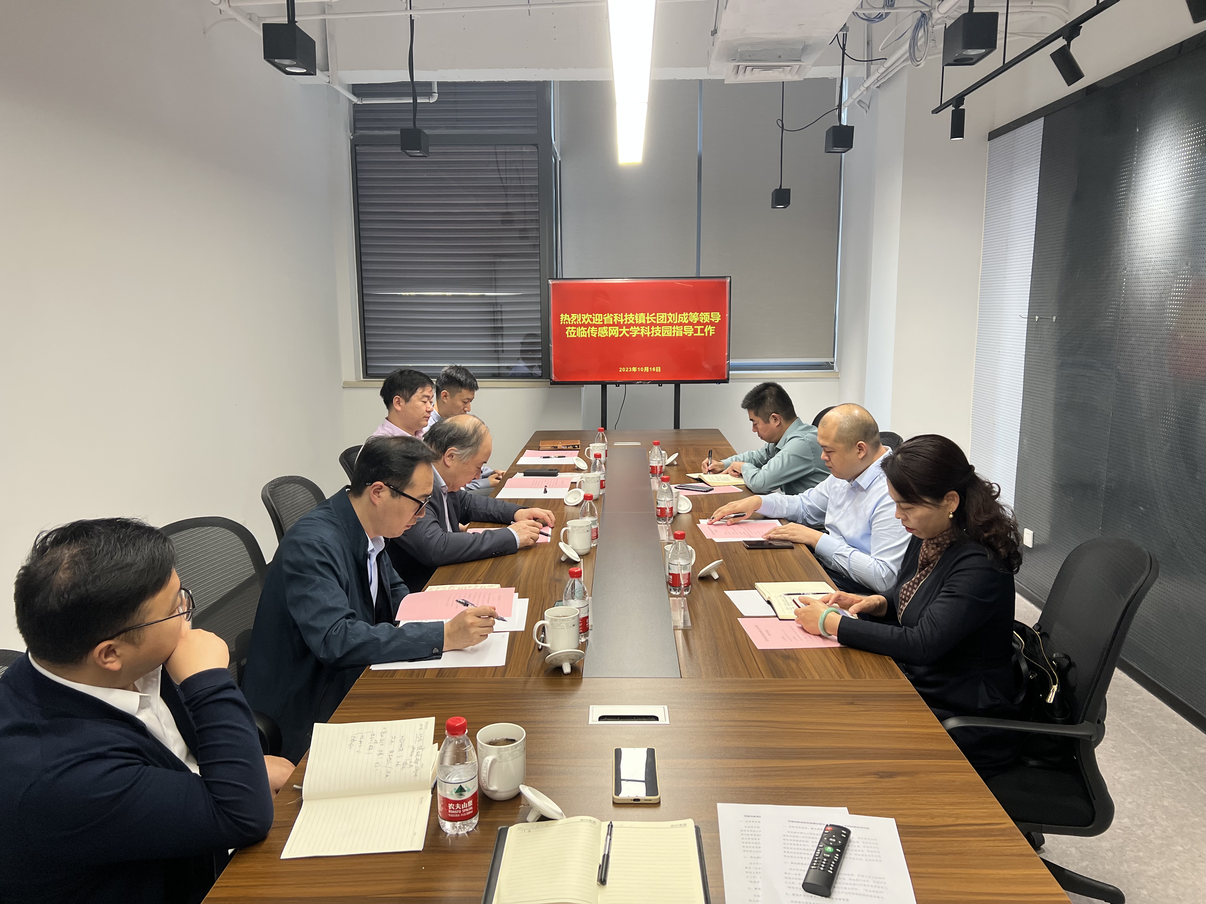 省科技镇长团一行先后参观无锡传感网国家大学科技园众创空间及在园企业,并就园区科技创新发展、服务平台建设、产学研合作等方面进行了座谈交流。