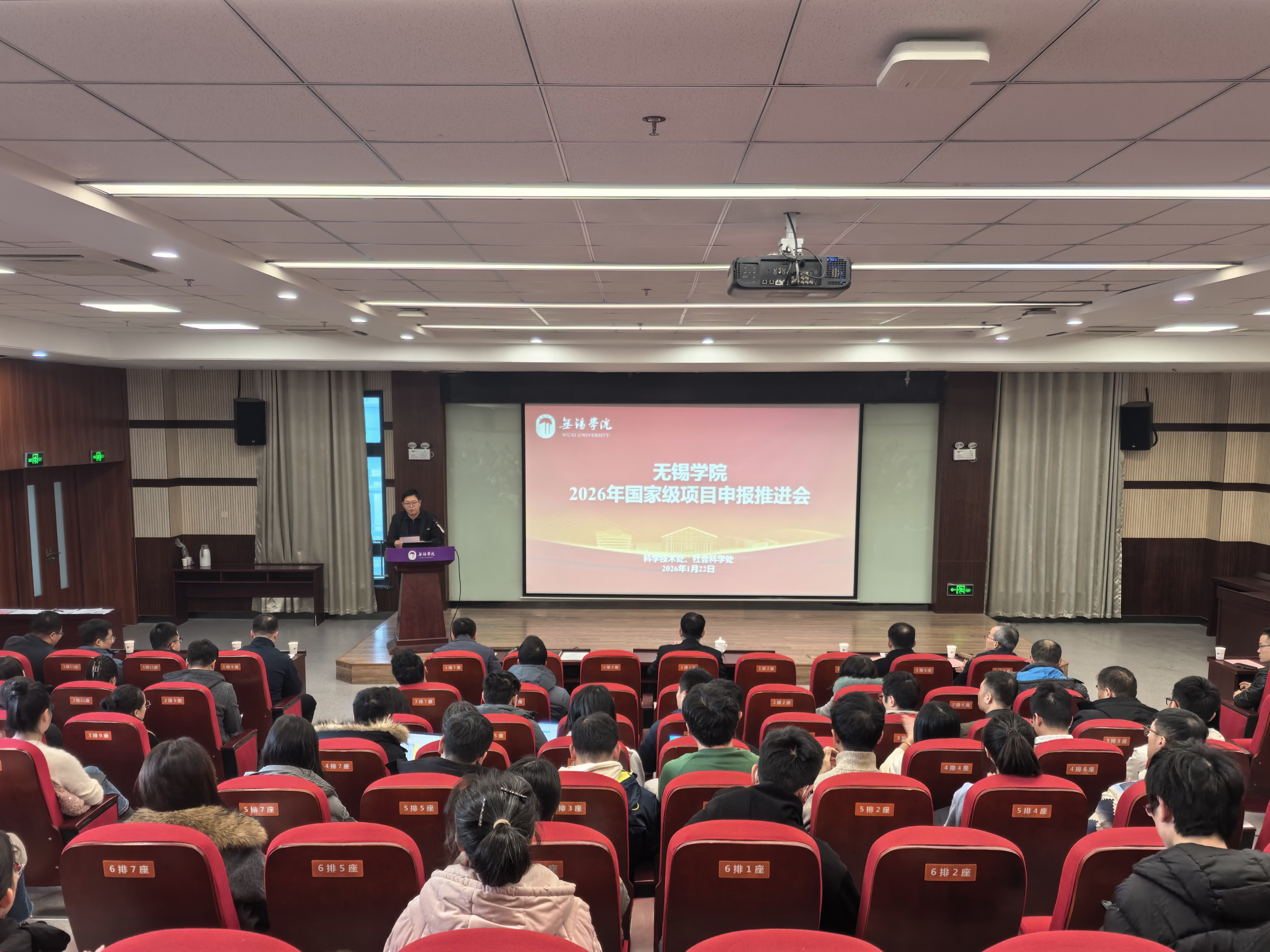 1月22日下午,学校在行政楼227会议室召开2026年国家级项目申报推进会。校长孙雁飞出席会议。各二级学院负责人、科研工作负责人、科研秘书、2026年国家级项目申报人员、近两年新入职青年博士、校内辅导团成员以及科技处全体工作人员参会。会议由科技处负责人李东明主持。