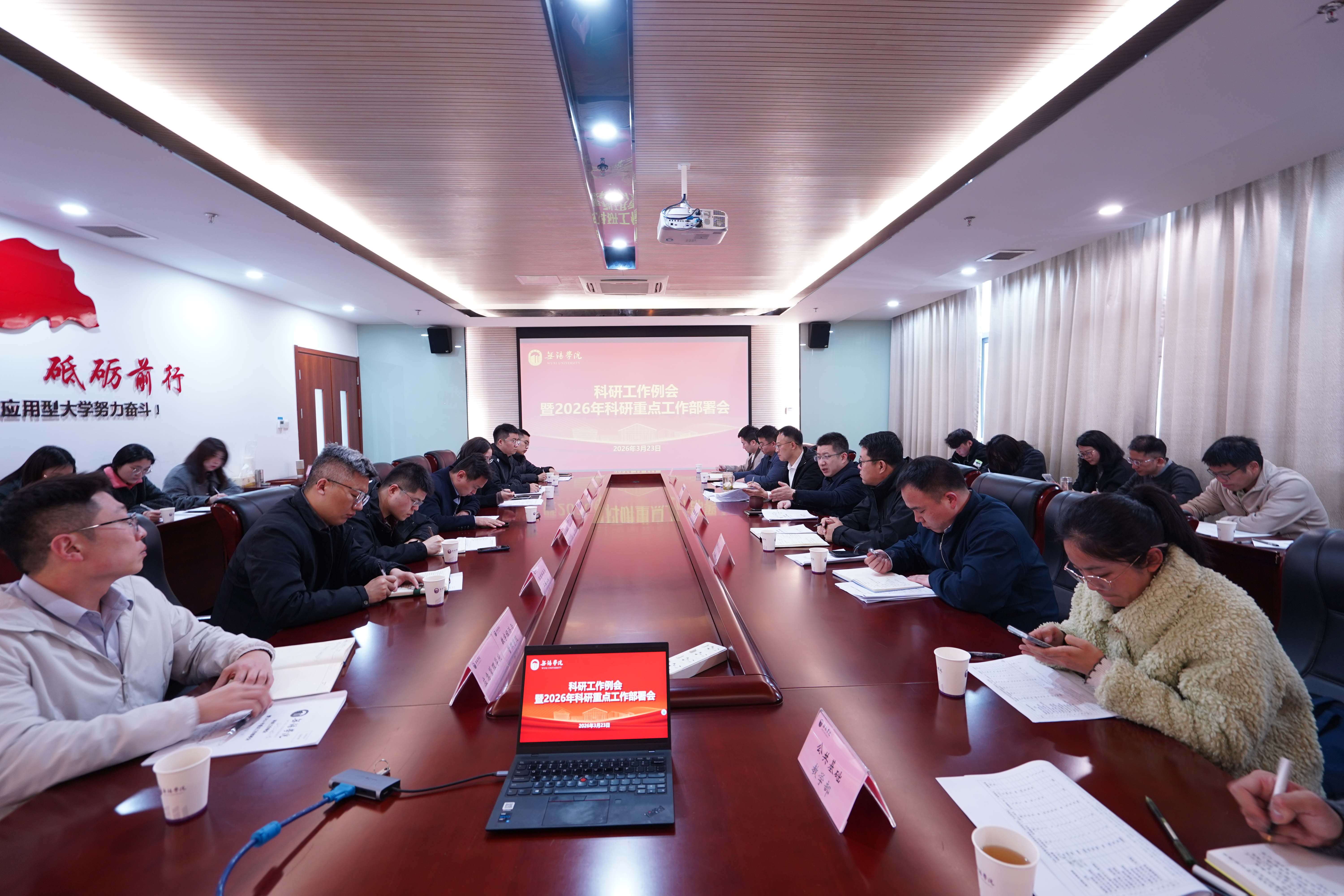 3月23日下午,我校2026年第一期科研工作例会暨科研重点工作部署会在行政楼501会议室召开。副校长徐军海出席会议并讲话。各二级学院负责人、科研秘书及科技处工作人员参加会议。